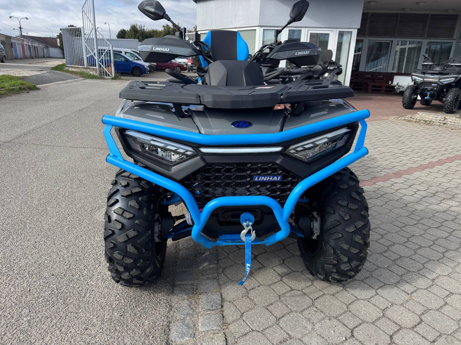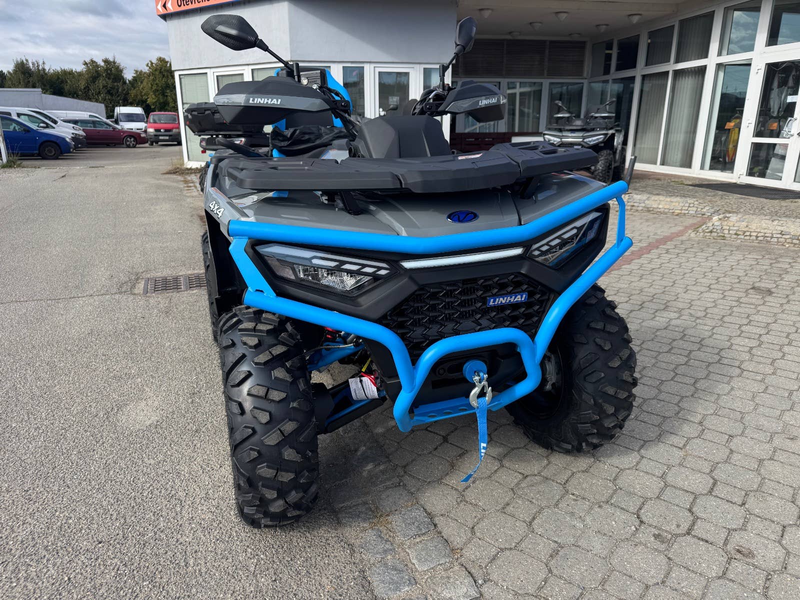 Užitková / pracovně-rekreační čtyřkolka, T3b, dlouhý rozvor, vysokovýkonné Full-LED světlomety, LED světla pro denní svícení, přední LED blinkry, kapalinou chlazený jednoválec 580 cm3, posilovač řízení EPS, EFI, automatická převodovka CVTech, L/H/N/R/P, pohon 2x4 / 4x4 s uzávěrkou předního i zadního diferenciálu, plynokapalinové plně nastavitelné tlumiče s oddělenou nádobkou nezávislá dvojitá A-ramena, 4x kotoučová brzda, tažné zařízení, masivní přední a zadní ochranný rám, kompozitní nosiče vpředu a vzadu, El. naviják 3000lbs s nylonovým lanem a dálkovým ovládáním, 14" ALU kola se systémem Beadlock, 26" pneumatiky Bulldog, hliníkové protiskluzové stupačky řidiče a spolujezdce, dvoubarevně prošívaná sedačka spolujezdce a opěrka zad, barevně lakovaná A-ramena a pružiny