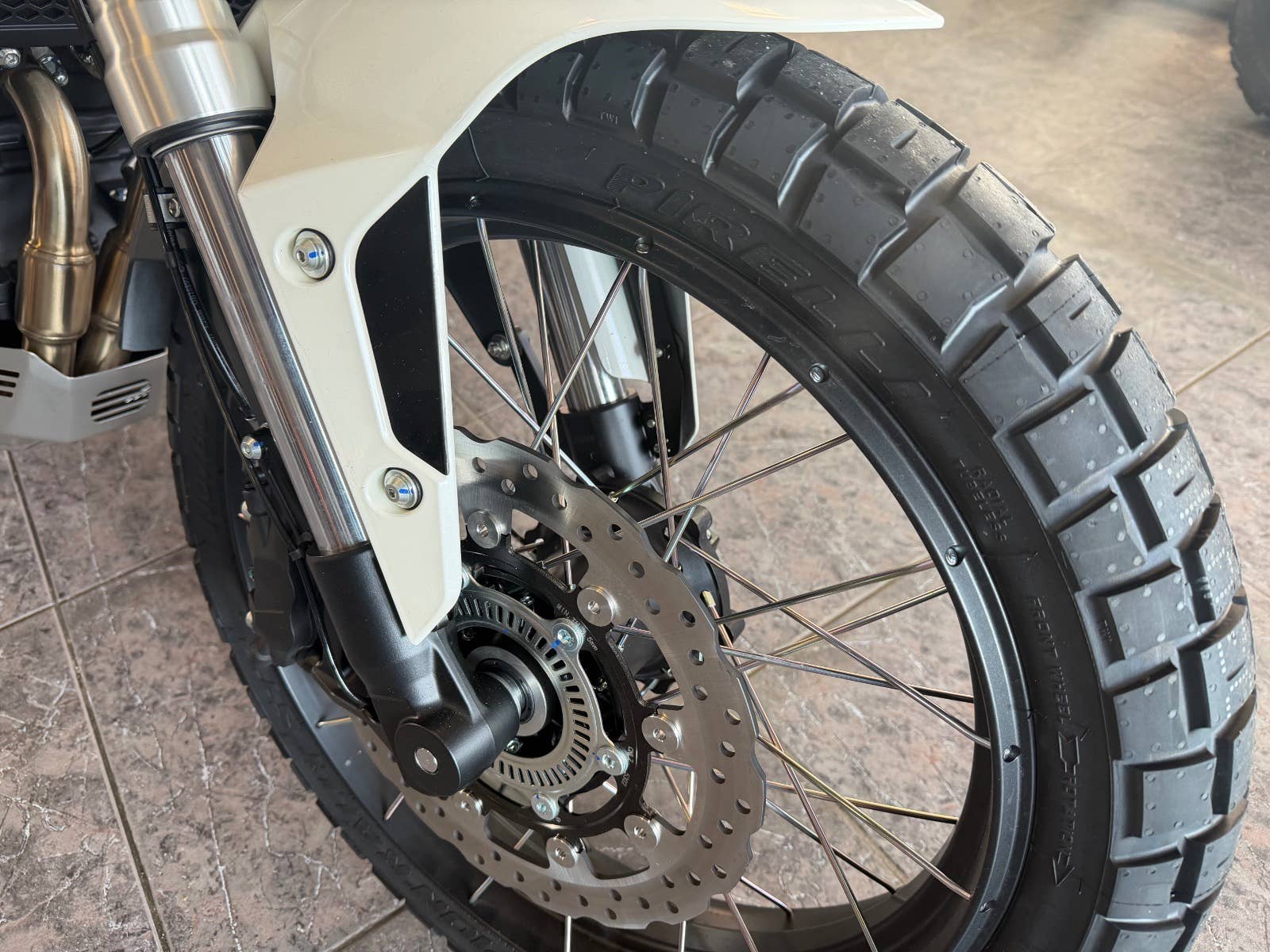 Přední 19" a zadní 17" kola s bezdušovými pneumatikami Pirelli pro dva účely poskytují přilnavost, odolnost a připravenost pro jízdu ve smíšeném terénu.
