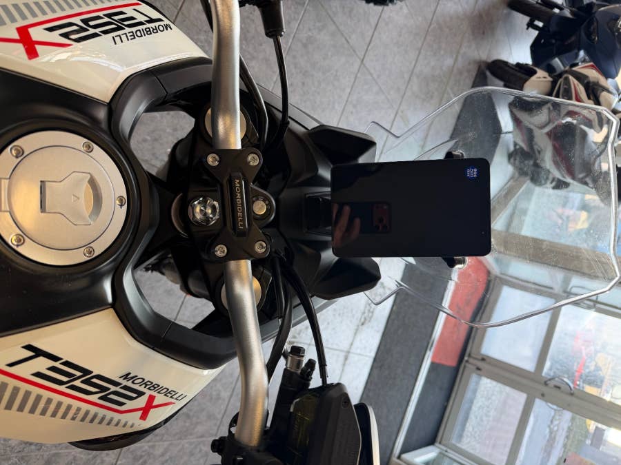 Vertikální obrazovka ve stylu rallye se 3 jízdními režimy (Standard, Sport a Off-road). Plná integrace systému Morbidelli Connect: GPS navigace, SOS tlačítko, ochrana proti krádeži s dálkovým vypnutím a roční přístup k aplikacím v ceně.
