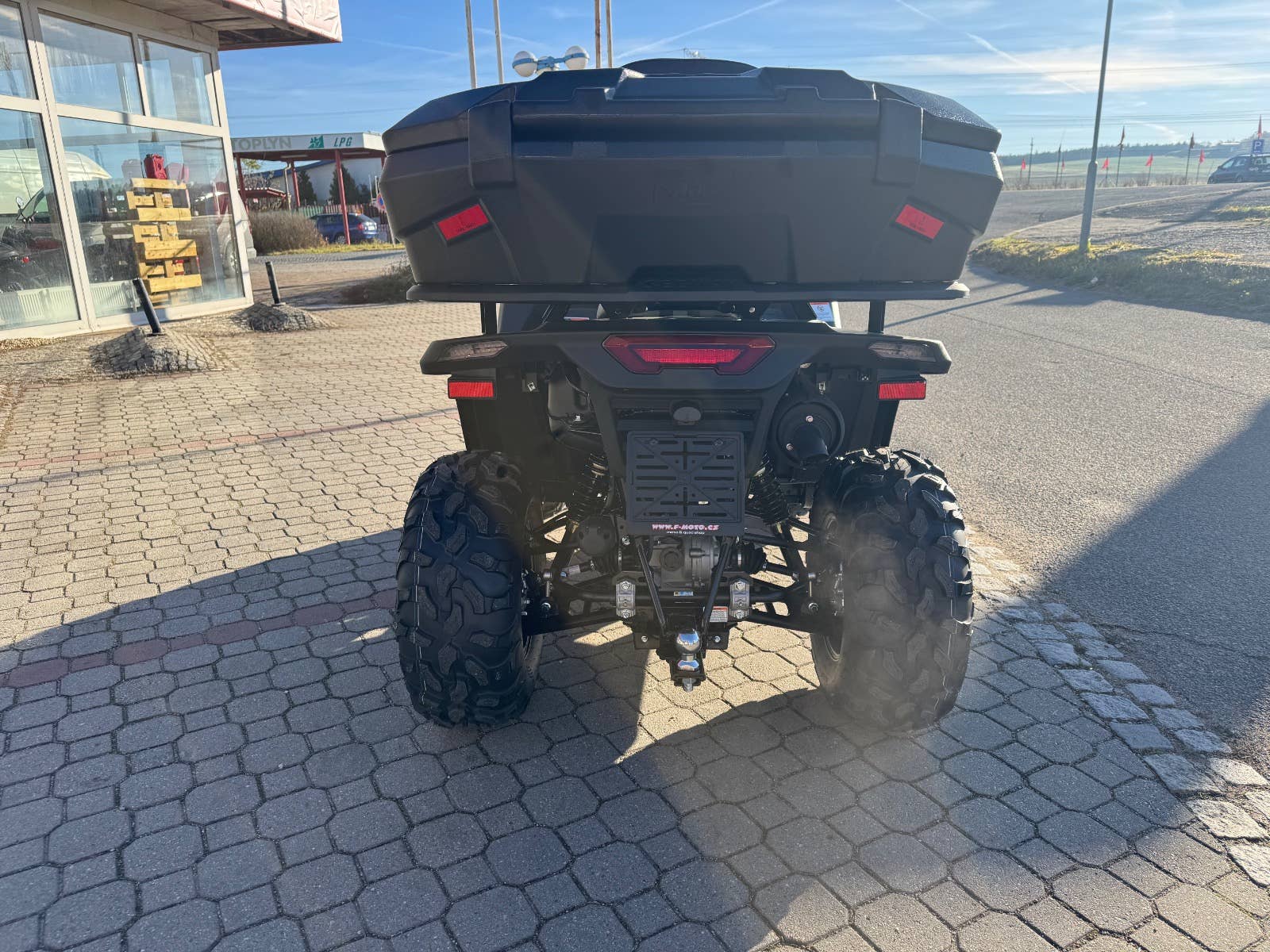 Nová užitková / pracovně-rekreační čtyřkolka s prodlouženým podvozkem, T3b, elektrický posilovač řízení EPS, kapalinou chlazený jednoválec 499 cm3 EFI o výkonu 39hp, automatická převodovka P/R/N/L/H, brzdění motorem, pohon 4x4, dvojitá A-ramena vpředu / dvojitá A-ramena se stabilizátorem vzadu, hydraulické tlumiče s progresivními pružinami, přední a zadní ochranné rámy, tažné zařízení, el. naviják 2500 lbs, kompozitní nosiče vpředu a vzadu, Full-LED osvětlení, prodloužené sedadlo spolujezdce s opěrkou zad, 12V zásuvka, 12" hliníkové disky, 25" pneu, ochranné kryty rukojetí