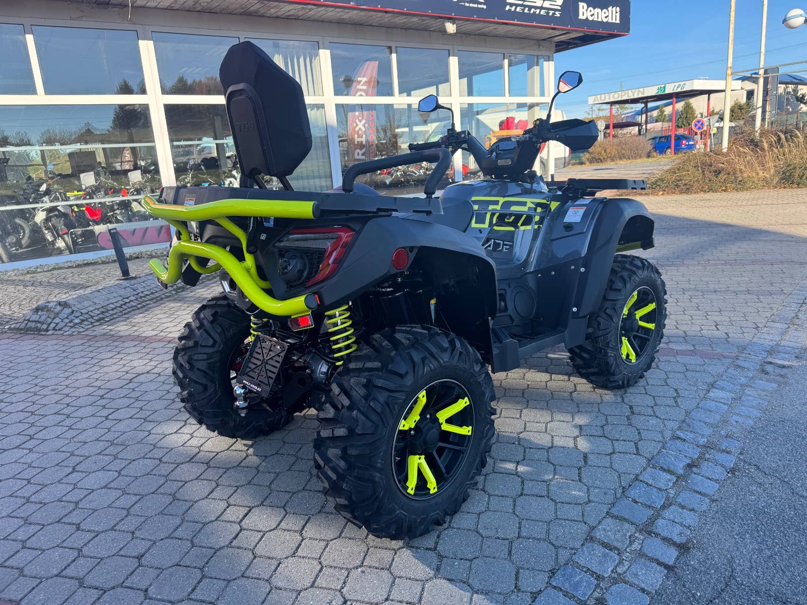 Užitková / pracovně-rekreační čtyřkolka s Full-LED matrix světlomety, zadním EVO LED osvětlením s dynamickým blinkrem, T3b homologace, barevný TFT displej s bluetooth (BT) připojením k telefonu, 14" černé XTC ALU disky s barevnými paprsky, nitrogenové tlumiče EVO, značkové pneumatiky, prodloužený podvozek, třírežimový posilovač řízení EPS, kapalinou chlazený motor V-Twin 997 cm3 EFI, vylepšená automatická L/H/N/R/P převodovka s japonskými komponenty, brzdění motorem, pohon 2x4 / 4x4 s uzamykatelným předním i zadním diferenciálem, 4x hydraulická kotoučová brzda, nezávislá dvojitá A-ramena vpředu i vzadu, přední i zadní ochranný rám, zlepšený přední nájezdový úhel, vyšší světlá výška vzadu, tažné zařízení, el. naviják 3000 lbs, kompozitní nosiče zavazadel vpředu a vzadu, chrániče rukou, samostatné sedadlo spolujezdce s opěrkou zad a madly, odnímatelná mřížka chladiče, 12V zásuvka